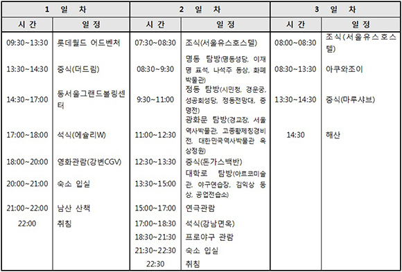 ¼¿ïÅä¹ÚÀÌ ¿©Çà ÇÁ·Î±×·¥ÀÇ ÀÏÁ¤Ç¥ÀÔ´Ï´Ù.