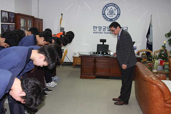 2017Çг⵵ ¼¿ïƯº°½Ã ±â´É°æ±â´ëȸ ÃâÀüÀ» ¾ÕµÎ°í º»±³ ±³Àå½Ç¿¡¼ ÃâÀü ¼±¼öµéÀÇ ¾ÈÀü°ú ¼±ÀüÀ» ±â¿øÇÏ°í °Ý·ÁÇÏ´Â °á´Ü½ÄÀ» °¡Á³½À´Ï´Ù.